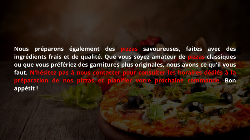 Dégustez nos kebabs savoureux, préparés avec des ingrédients frais et accompagnés de garnitures variées pour satisfaire vos envies.